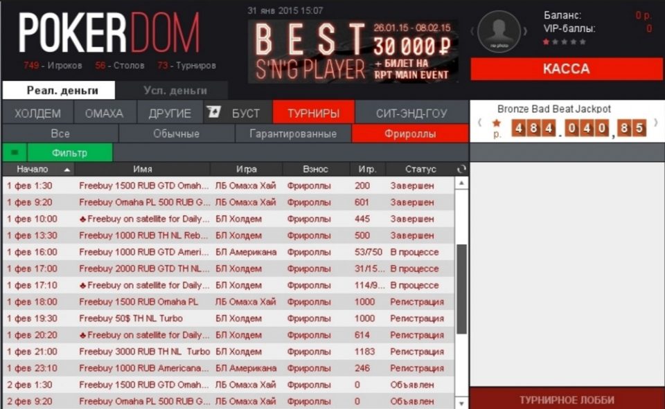 Такая политика привлечения клиентов активно используется в PokerDom – первым отечественным проектом, где есть поддержка рублей. Здесь ежедневно проходят бесплатные состязания с призами от 50 рублей до 1000 долларов. В большинстве случаев регистрация в них открытая, то есть участвовать могут все. Есть и турниры, требующие специального кода, либо организованные только для определенной категории пользователей. В сегодняшней статье осветим все эти нюансы более подробно.
