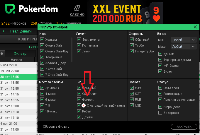 Ежедневно в руме проходят различные состязания, найти их можно в главном лобби в соответствующей вкладке. Благодаря системе фильтров, сделать это будет довольно легко.